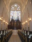 祭壇には、10m×5mのステンドグラスをバックに、2mを超えるキリスト像が立っております