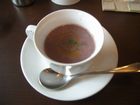 出てきた時は「おしるこ?」と思いましたが、なんと、紫イモのポタージュ