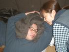 なんか頭すごい感じになってますが、これ地毛ではなく、毛布を巻きつけてます